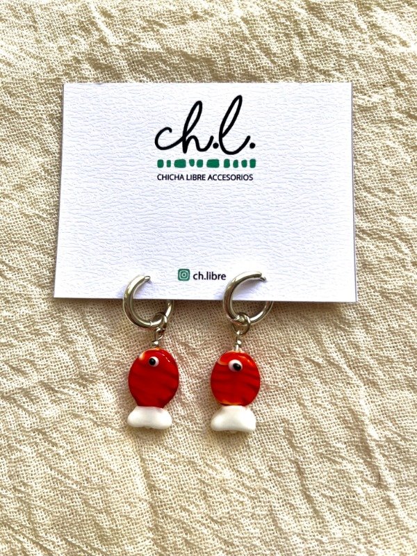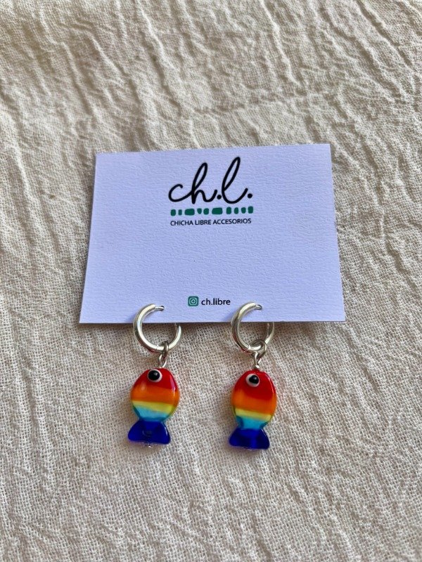 Aros con dije de pez de ceramica diferentes colores. Abonando con efectivo transferencia te quedan en $10.000