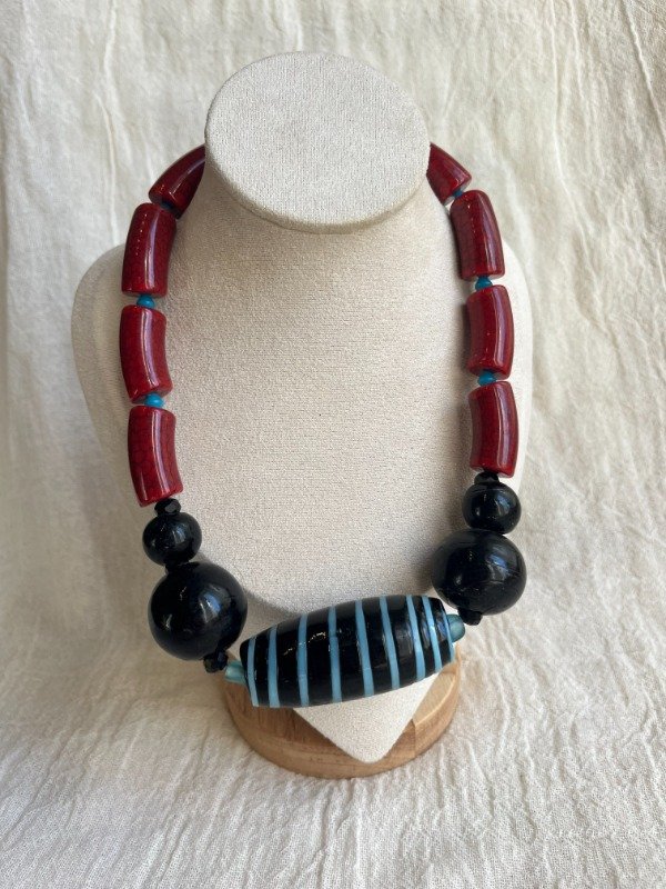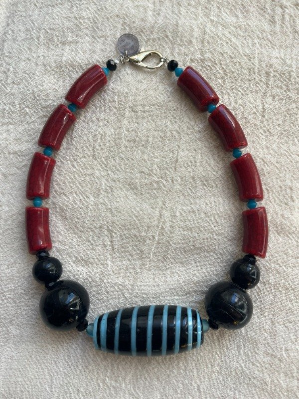 Collar de piedras acrilicas y cuenta de vidrio central. Abonando con efectivo o transferencia te queda en $30.000