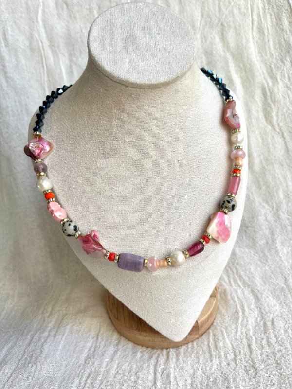 Collar de piedras de nacar con destaques en piedras naturales y de vidrio. Disponible en diferentes colores. Abonando con efectivo o transferencia te queda en $18.000